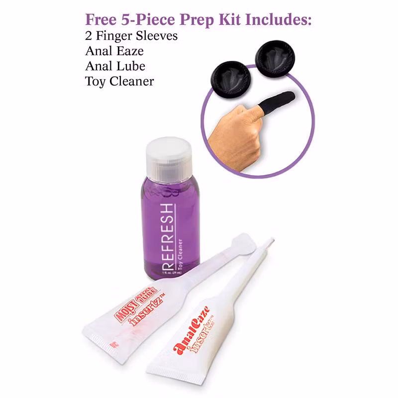 Varje Anal Fantasy-box har ett GRATIS 5-delat förberedelsesats för att hjälpa dig att känna dig bekväm och städa upp efteråt. Satsen innehåller två fingerhylsor, Anal Eaze Insertz Cream, Moist Anal Lube och Refresh Toy Cleaner.