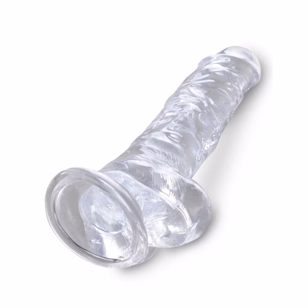 King Cock® Clear 8-tums dildo kombinerar en genomskinlig dildo med en realistisk kukdesign: flexibelt skaft, detaljerade vener och definierat huvud. Den kraftfulla sugkoppsbasen fäster på nästan vilken plan yta som helst och är kompatibel med strapon harness.