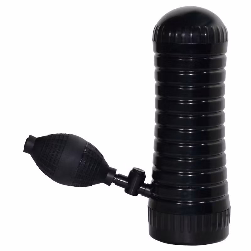 Kombinerad lösvagina och penispump på burk! Läckert svart och diskret masturbator med pumpfunktion som blir tightare för varje pump du gör. Produkten känns som en härligt tajt mus, burkens insida är fylld av sköna "prickar" för att ge dig extra stimulation med varje rörelse. Mycket lätt att rengöra då både toppen och botten är öppningsbara.