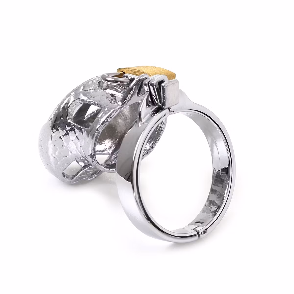 Har din stygga slav för mycket frihet? Håll honom sedan låst och låst med denna äkta kyskhetsbur i metall. Lås in honom och tvinga honom att kapitulera genom att placera buren och ringen över penisskaftet. Det är här spelet börjar. Med sin maskulinitet inlåst i en fästning av metall kommer han inte att kunna uppnå en full erektion, hans tillfredsställelse och stimulans är begränsad, samtidigt som du behåller honom villigt. Länge leve dominansen! Ringen är 45 mm och ingången är 32 mm för penis.