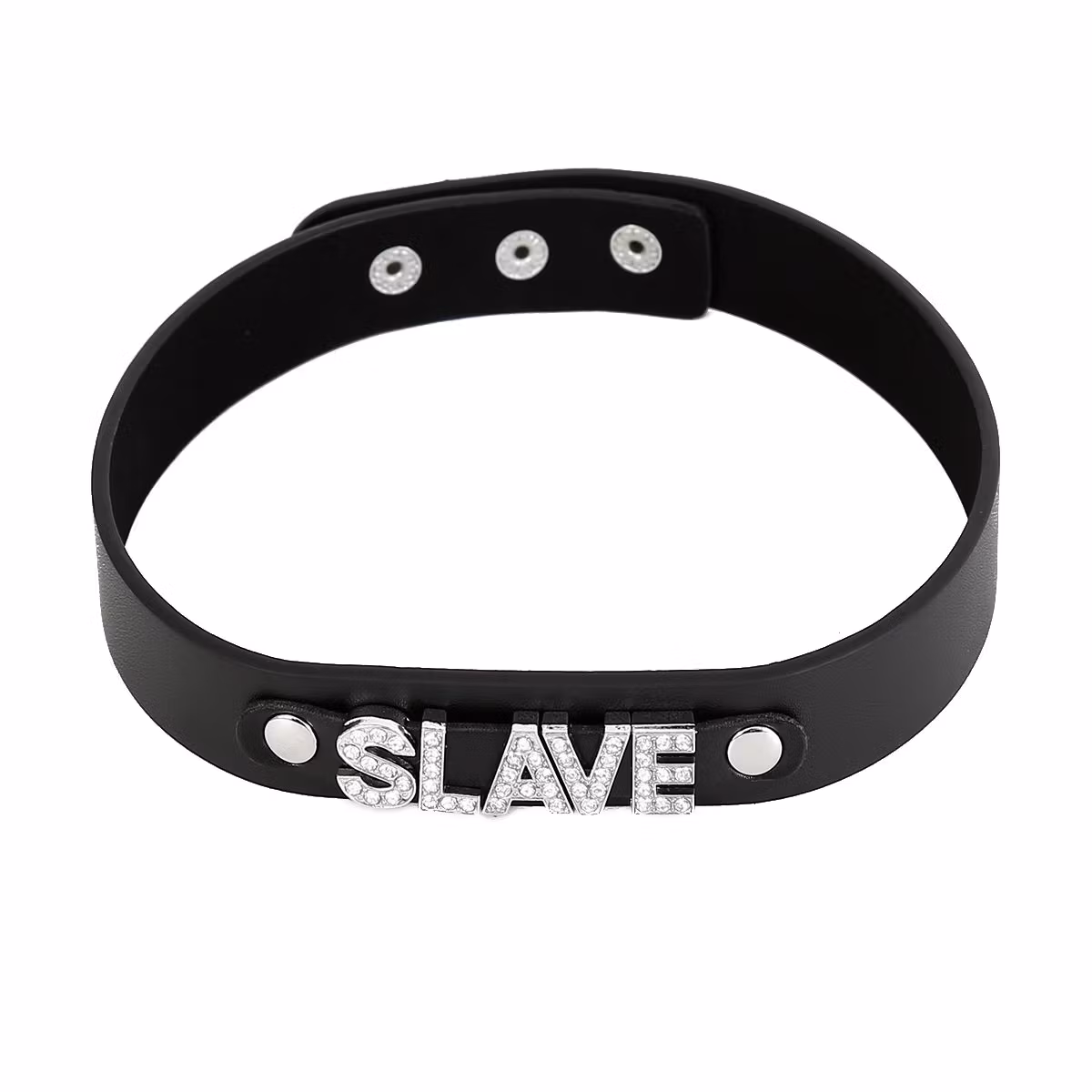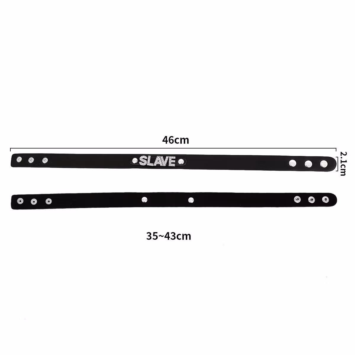 Denna premium PVC-läderliknande krage är gjord för att göra ett uttalande, med en djärv "SLAVE"-namnetikett som framhäver din partners undergivna roll. Kragens slitstarka PVC-material erbjuder utseendet och känslan av läder med extra fördelar - det är lätt att rengöra, vattentåligt och bibehåller en elegant, glansig finish även vid frekvent användning. Designad med justerbara snäppknappar, kan denna krage snabbt ändra storlek för att passa bekvämt och säkert, vilket gör den lämplig för långa sessioner eller diskret dagligt slitage.