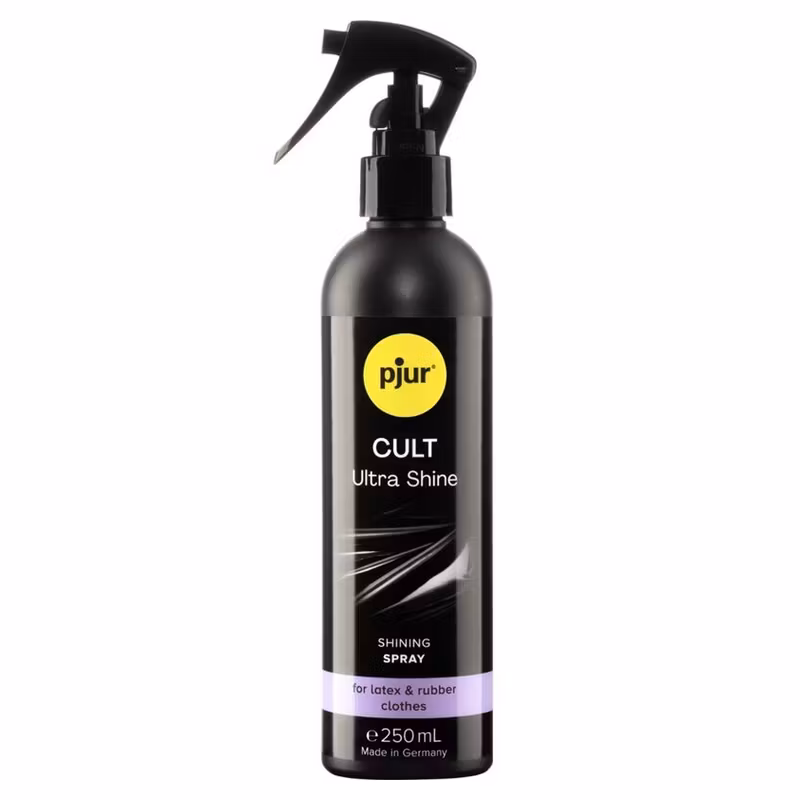 Gummi- och latexkläder måste garantera en sak framför allt: glans, det vill säga stå i centrum för uppmärksamheten. Därför finns det förutom pjur CULT, som används som hjälpmedel för att ta på gummi- och latexkläder, även pjur CULT ULTRA SHINE. Förutom att ge en ultra glans, som namnet indikerar, skyddar och behandlar denna produkt materialet. Formulan är långvarig och resistent mot smuts, inte klibbig och lämnar inga fläckar.