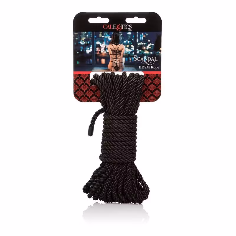 Ge dig till din vilda sida och bli kreativ med CalExotics Scandal Rope. Den prisbelönta Scandal-kollektionen ger dig 10, 30 & 50 meter sensationellt silkeslent rep som låter dig dyka djupt in i oändligt kreativ återhållsamhetslek och bondage-sex. Ge dig själv över till ökad njutning och förhöjd upphetsning med varje omslag av detta smala, mångbegåvade rep. Använd för att binda handleder, vira runt anklar, skapa stygg inredning eller utforska unikt sexiga outfits för kinky och rolig fetischsex. Det silkeslena repet är idealiskt för par som vill experimentera med Shibari, återhållsamhetslek och sexuell bondagelek. Ta dina fantasier till nästa nivå och bli skandal med den oändligt roliga sexleksaken Rope.