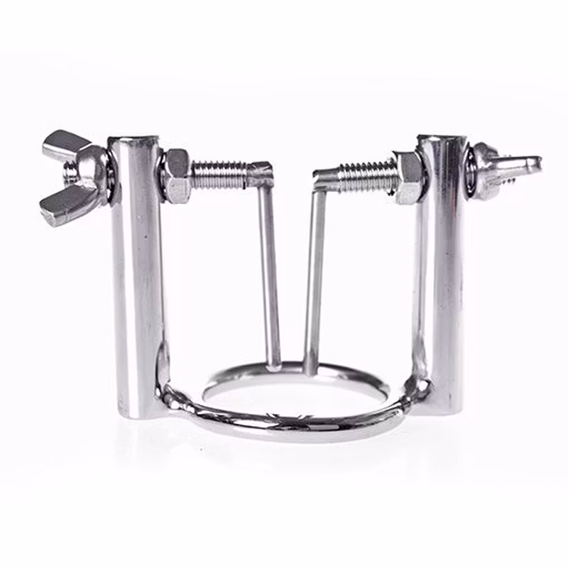 Urethral Stretcher kommer med två pinnar som glider in i urinröret, placerade på en ram som är fäst vid ollonringen. När ringen har glidit precis förbi huvudet på penis, använd de två vingmuttrarna för att försiktigt sprida isär sidorna av urinröret.