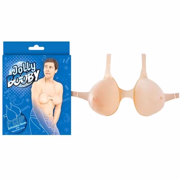 Har du alltid velat känna hur det skulle vara att ha bröst? Då är det här din chans! Dessa uppblåsbara Jolly Booby bröst kan du uppleva dem. Brösten har en F kopp storlek och är uppblåsbara en efter en. Banden är fästa med kardborreband så att du enkelt kan justera dem för en bra passform. Jolly Booby är en bra present till en vän eller familjemedlem!