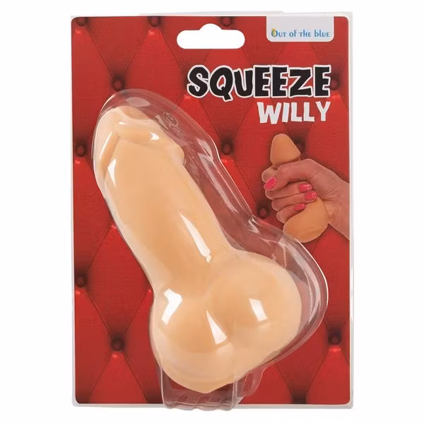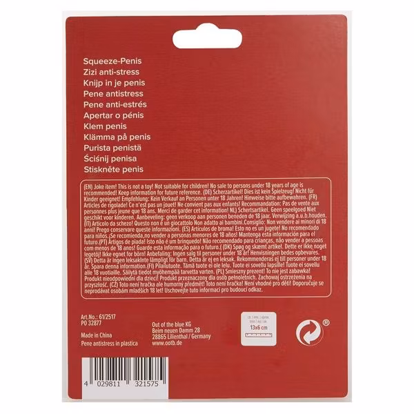 Hudfärgad knådpenis med pung. 13 cm lång, Ø 6 cm. Fungerar som antistress-boll - vid nervositet, irritation och stress: knåda på! Även en bra present!