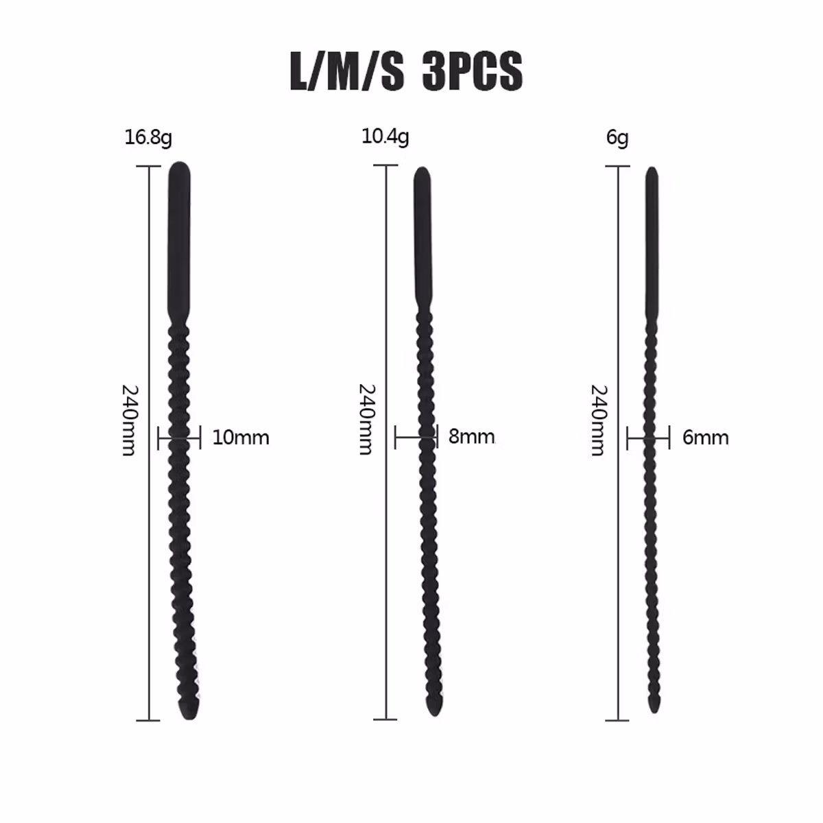 Detta gängade silikonurethralset från Kiotos X är perfekt om du vill träna på att sträcka ut urinröret. Speciellt utformade urinrörsljud för din penis. Urethral är för de flesta en märklig men onekligen tillfredsställande handling, varför urinrörsljud blir mer och mer populärt än någonsin. Detta set innehåller 3 gängade silikon urethral som börjar med 6 mm, sedan 8 mm och slutligen med 12 mm i diameter. Dessa silikonljud är toxinfria och får dig att le. Lätt att rengöra. Leksaksrengöring rekommenderas.
