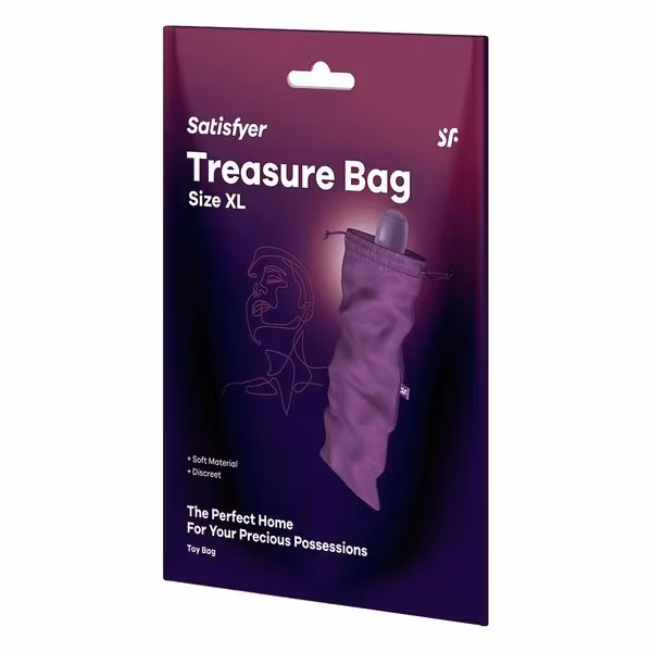 Oavsett om du letar efter ett elegant sätt att förvara din nöjesprodukt i din låda eller vill ta din favorit Satisfyer med dig på dina resor och skydda den från nyfikna ögon, är Satisfyer Treasure Bags precis vad du behöver! Tillverkade av mjukt, hållbart material, håller de dina skatter säkra tills det är dags för nästa sexiga äventyr. Vill du förvara din Satisfyer Wand-er Woman, din Men One eller andra stora bitar av kärleksleksaksskatter? I Satisfyer Treasure Bag XL får även de större Satisfyer-modellerna plats bekvämt!