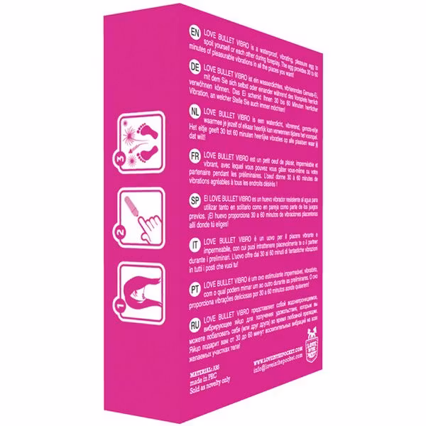 Kärleksvibrator som trots sin lilla storlek ger så mycket njutning. Även om det främsta användningsområdet är för klitorisstimulation så fungerar Love Bullet självklart utmärkt på valfritt annat ställe av kroppen med sin mjuka rundade topp. Vibratorn är gjord av hårdplast och tål lättare vattenstänk i duschen, den är dock inte vattentät och kan inte dränkas i vatten. En uppsättning batterier ingår för att du ska komma igång med lekandet direkt. Snygg knallrosa färg och ett fast, starkt vibrationsläge. Använd den ensam eller i kombination med en penetrerande dildo, alternativt som klitorisvibrator under tiden du har sex.