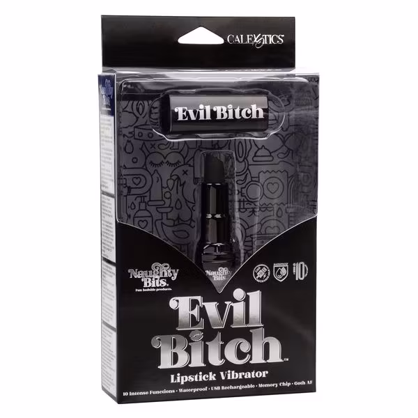Se upp, Naughty Bits Evil Bitch Lipstick Vibrator är stygg och fin. Den edgy svarta läppstiftsdesignen, 10 kraftfulla vibrationsfunktioner och den viskande tysta volframmotorn är gjorda för att spännande vart dina äventyr tar dig. Den vinklade spetsen är gjord för att ge exakt stimulering eller fullkontaktspulsering till dina favoritnöjespunkter. Rödande nybörjare och erotiska experter kommer att älska de kraftfulla vibrationerna som den viskande tysta motorn ger ut. Njut av 10 högintensiva vibrationsfunktioner med den eleganta silikonknappen och håll den intryckt i 3 sekunder för att slå på/av.